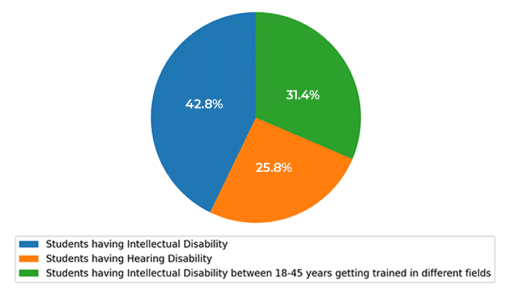 As of January 2023, SPEVC has 264 students – 113 minors with Intellectual Disability, 68 students with Hearing Disability and 83 Adult students with  Intellectual Disability, aged between 18 and 45 years, who and are getting trained in various skills in our Vocational Section.